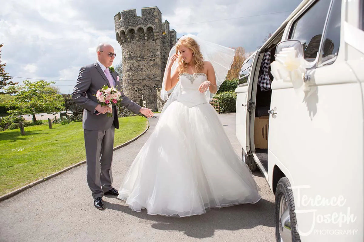 Holly and her bridesmaids arrived in a VW Van. Pretty much identical to the one we used to have in my family. The sun was out. Everyone was in a great mood and Holly’s father was really looking after her, that’s always something I admire.