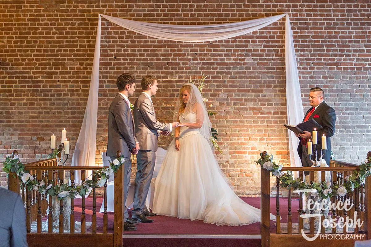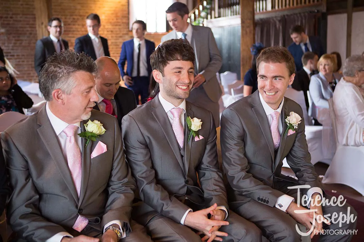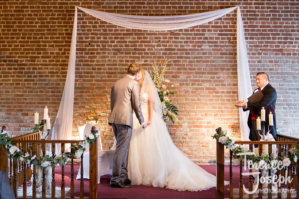 Holly and Gary were married in the The Heritage Barn, one of three barns that were available. It is the only one where the bride could start the ceremony from the gorgeous flower-adorned balcony. Down the staircase and onto the red carpet. Gary couldn’t help but sneak a few peeks of Holly over his shoulder, just how it should be!